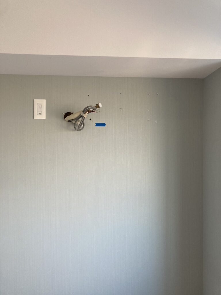 エアコンが取り付いてないと配管や電線が壁から出ていて、少し違和感がありますね。